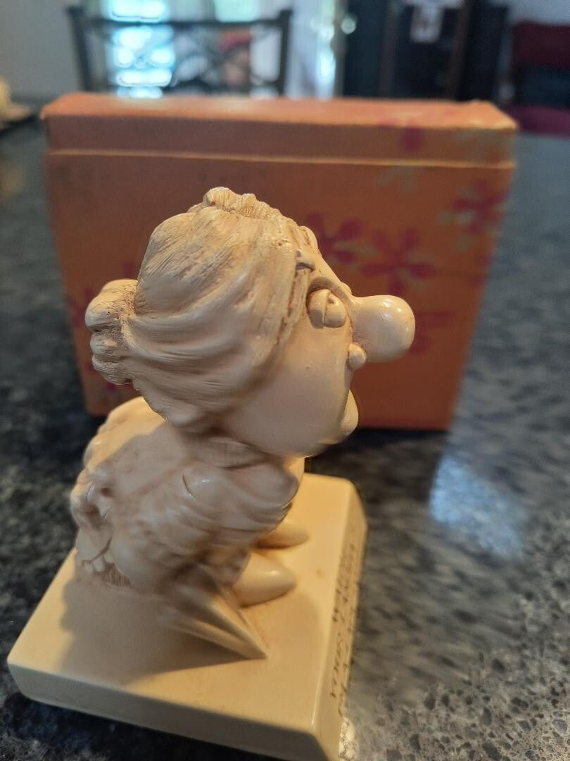 Who doesnt remember these funny characters! Each had a funny saying on them, everything from #1 dad to this "Im a lady..." one. This statue is in its original box & paper from 1966! View all photos and make her yours!!
