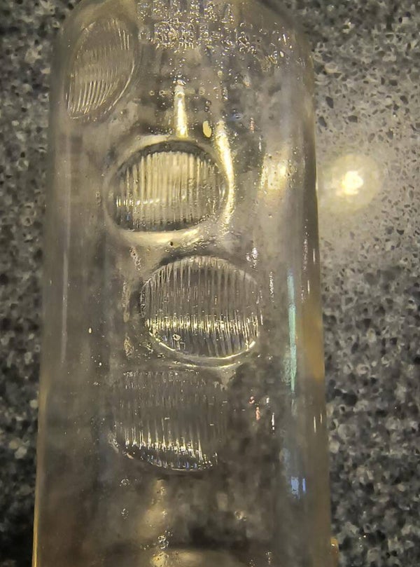 This is a tall bottle, rather thick glass with actual thumb and finger prints made as part of the design in the actual glass. See photos. Bottom reads "L711 1D1 25-55" As best I can make it out. Possibly a Hazel Atlas item?? Unsure. This item is holding on more information and will be for sale soon!!