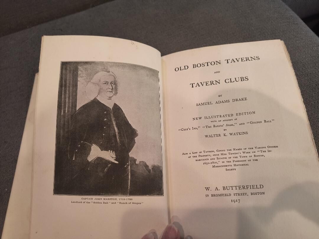 This is an amazing find!! This is a first edition 1917 Boston Taverns and Tavern Clubs book by W.A. Butterfield. Book has 124 pages including a map of olde boston back bay, attached in the very back. The map has a small tear from people opening it too fast i think but take a look at the photos. It doesnt affect the text or images at all. Binder is excellent, hard cover, has small writing in corner of 1 page in beginning sttaing an old price and that its a first edition book. This is a rare item but a great collectors piece!